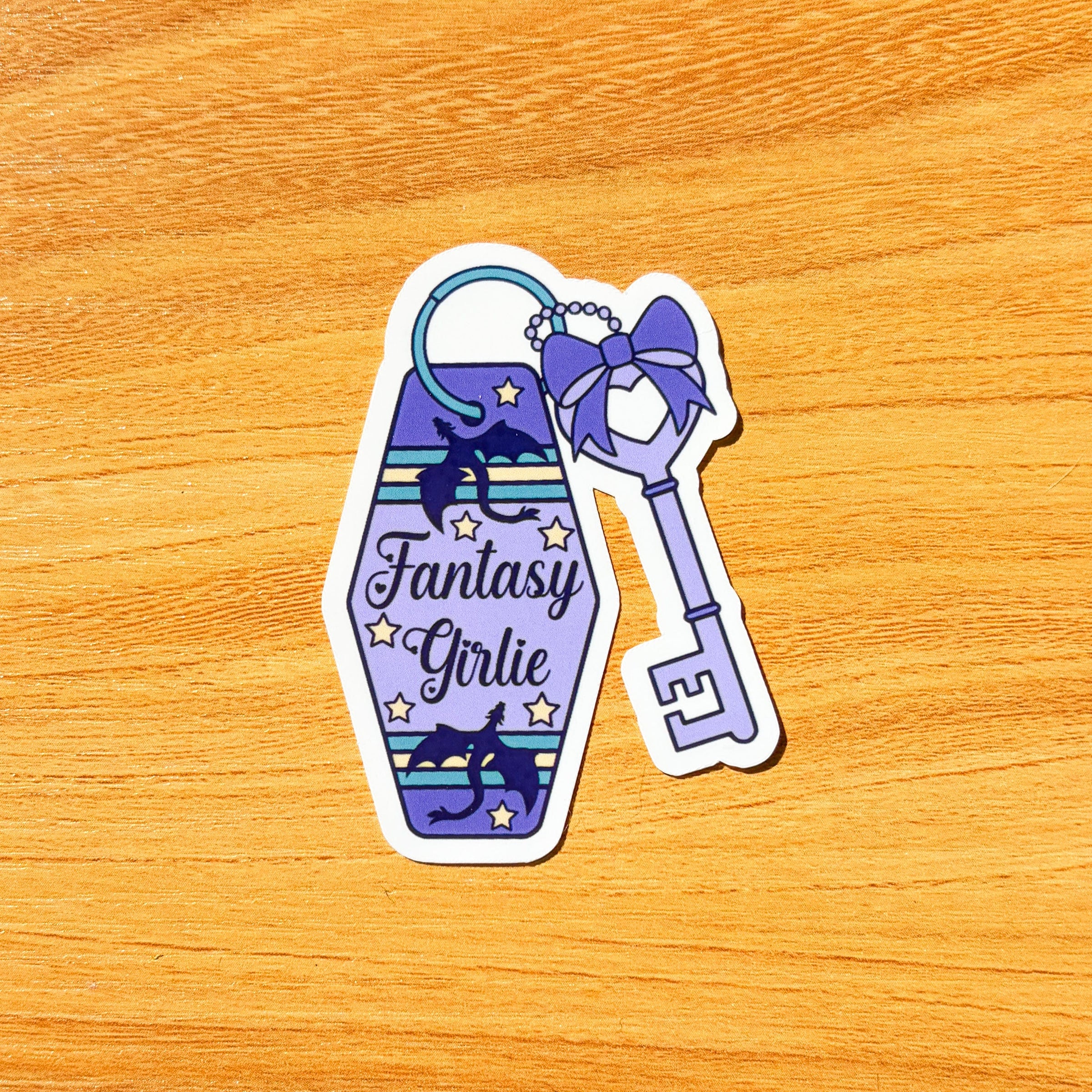 Show off your love for all things fantasy with this Fantasy Girlie sticker! Featuring a whimsical coffin-shaped tag design with dragons, stars, and a bow-tied key, this sticker is perfect for readers who can’t resist magical worlds, epic battles, and swoony fantasy romances.